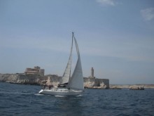 Ecole de voile, école de croisière ou location de voilier avec skipper sur un First 375, voilier habitable rapide et confortable. Navigation à partir de Marseille avec moniteur de voile.